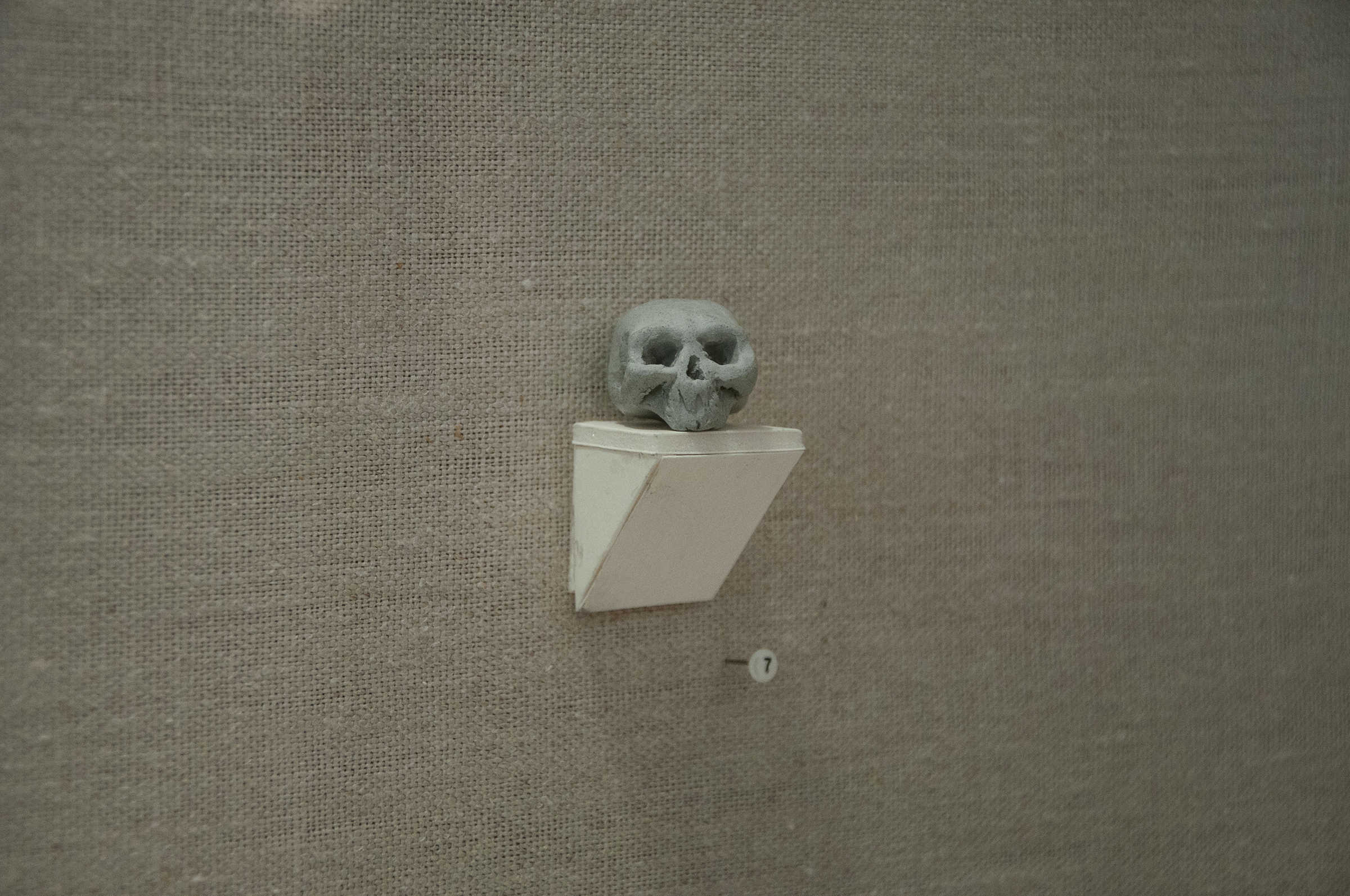 Senior studio art major Dylan Cartwright chose to create a small unfired ceramic sculpture of a skull as his piece within the exhibit titled “Temporal”